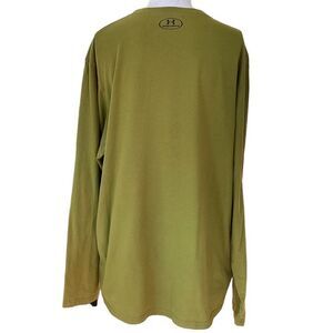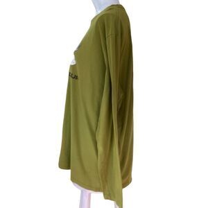 Green, cotton poly, long sleeve, round neck, graphic on front, EUC, neck to hem 32”, armpit to armpit 25”, armpit to cuff 20”.