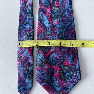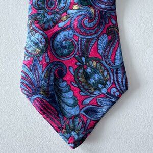 Men's Unisex Silk neck tie in beautiful Blue/Fuchsia and touch of green paisley print.