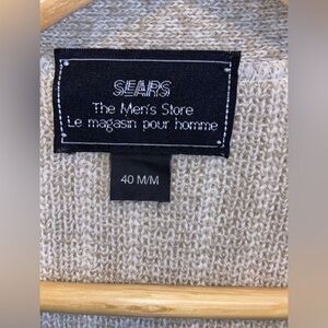Mens VINTAGE Sears oatmeal and cream buttoned knitted cardigan size Medium