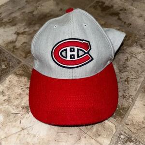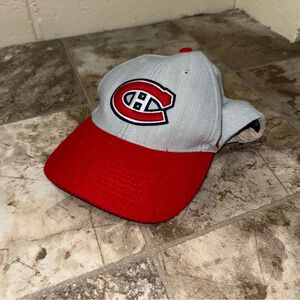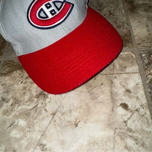 Men’s Vintage 47 Brand Montreal Canadians Hockey Habs Red and Green Wool Hat. Wool has some peeling and attaches hair easily but otherwise there is little wear. Acrylic and wool blend. Adjustable back that snaps into place. Great collectable item for a habs fan.