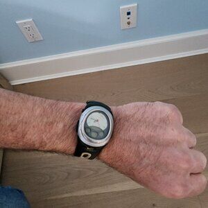 Vintage 1990s Nike Triax watch. Silver color on bezzle has areas with color scratched off from normal wear (see pictures). Needs a new battery. I have no reason to believe that it isn't working as it used to work fine before the battery died.