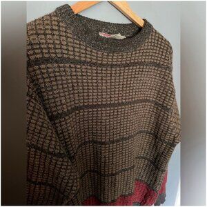 Men's Vintage Brown & Red Stripe Crewneck Sweater Size Medium – VG