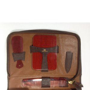 Men's Vintage Celluloid Vanity Travel Toiletry Grooming Set Kit Leather Case