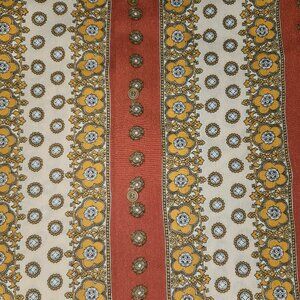 Colors are like a brick red, mustard yellow/orange and yellowish/tan colors.