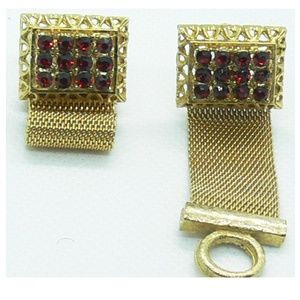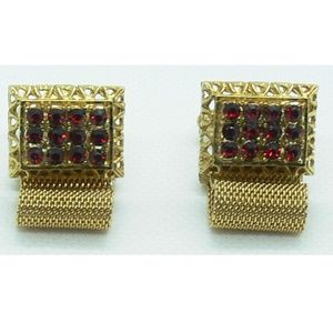 Mens Vintage Gold Tone & 12 Rubies Cufflinks w Mesh Wrap