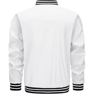 Men's White Bomber Lightweight Casual Spring Fall Windbreaker Zip Up Jacket