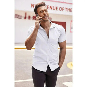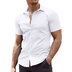 ❤️Men's White Dress Shirts Wrinkle-Free Short Sleeve Casual Button Down Shirt