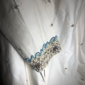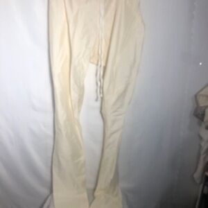 Waist: 56” maximum stretched out. Tie wrap waist.