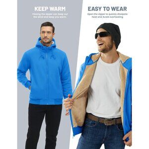 Mens Winter Hoodie Full Zip Fleece Sherpa Lined Warm Blue Casual Sweatshirt