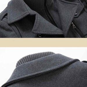 Men's Large Winter Pea Coat Slim Fit Single Breasted Short Wool Jacket Woolen Blend Trench Coat Thickening Fleece Overcoats