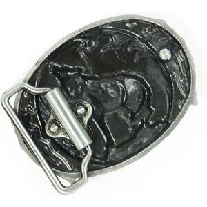Men's Wolf Western Fashion Retro Black Enamel Grey Tone Zinc Alloy Belt Buckle