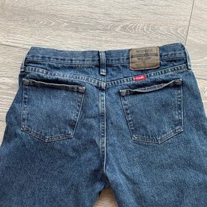 Elevate your style with these dark blue straight jeans. Perfect for versatile, everyday wear. Worn in and ready to work.