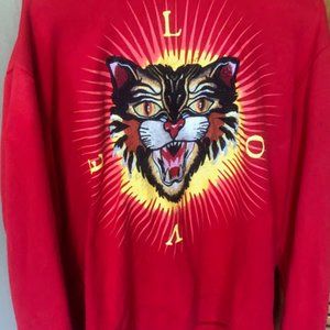 Men's XL Tiger Love Gucci Hoody, small stain inside (not visible outside), some wear on stitching on Tiger's right ear.