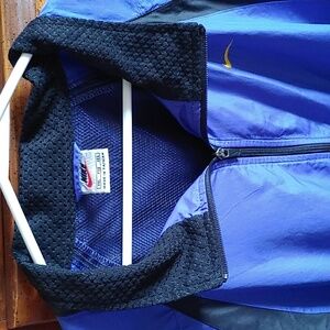 - zipper front, blue & black jacket, front & back of jacket have Nike swoosh