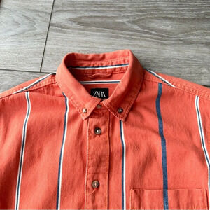 Mens Zara Denim Orange Stripe Button Down Shirt