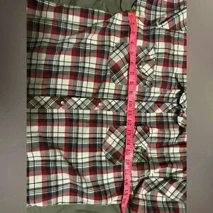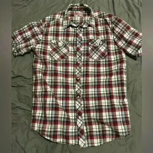 Men’s collared shirt button up by Ripzone reds blacks and white size large.
