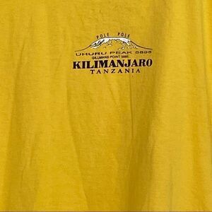 Yellow, no tags, map of Kilimanjaro routes on back (some blurring to print during processing on back), EUC, neck to hem 26.5”, armpit to armpit 19”.