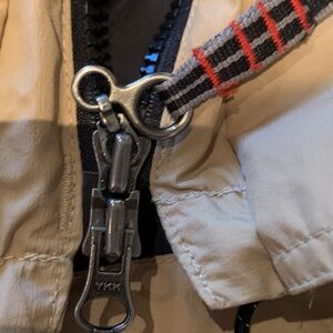 Very good condition Men's nylon hooded jacket. Multi zip pocket details. Zipper opening inner sleeves. Contrast inserts. Black mesh liner. 100 % nylon. GORE-TEX.