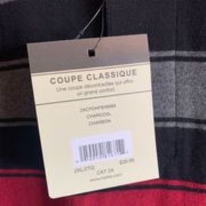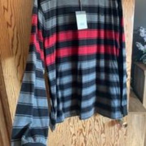 Brand new W/tags. Nice stripe color knit shirt. Has offset crisp white cotton collar. Tall sizing 2xl.