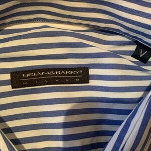 Excellent condition men's shirt from Italian brand "Brian & Barry Milano". 100% cotton high quality fabric. Yarn dyed stripes blue/white colour combo. Made in Italy.