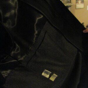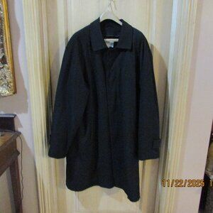 Like new, multiple inside pockets. 3 season coat with zippered/removable lining. European size 44. Top button is exposed, but the others are hidden under the front lap.