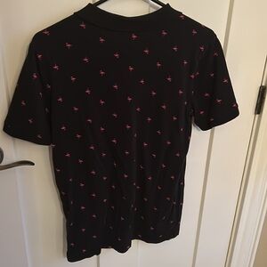 H&M Men’s pink flamingo, black polo shirt, size S. Really cute.
