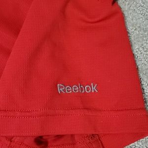 Reebok, red, golf shirt. Only worn once, but slight pilling. The material is sensitive, but still looks good and nice authentic material.