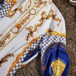 All 5 shirts - 3 Gucci polos, 1 Gucci dress shirt, 1 Versace dress shirt fits smaller than large.