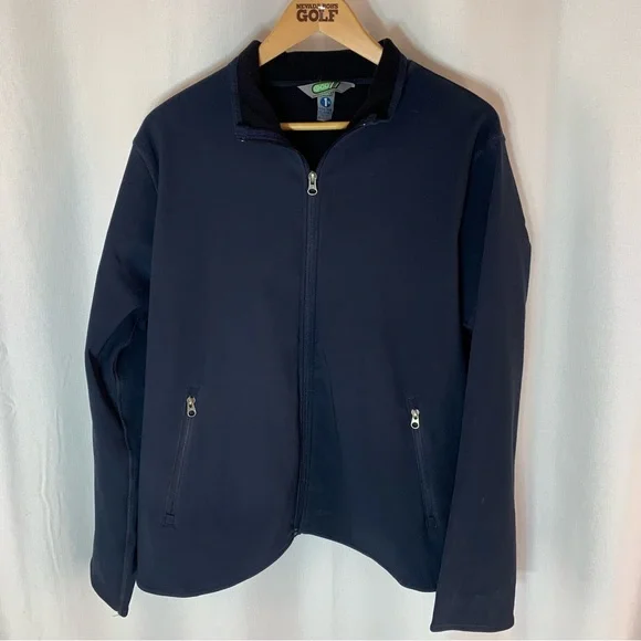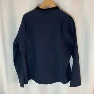BNWOT Men’s Navy Blue Soft Shell Jacket with 2 zip pockets on outside and two pockets on inside.