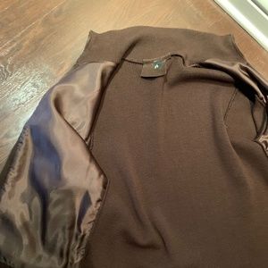 Very good condition Men's Fall jacket from Italian Brand "G'A". Deep rich brown colour. Front panels in suede and sleeves, back and collar in knit. Genuine suede and the sweater knit is in 50% merinos wool - 50% acrylic. Made in Italy. Very well made with nice zip picket details. Half lined. Photos show all the details. Italian size XL, and here are the measurements found on the jacket, as our sizing differs slightly.