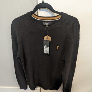 New with tags mens round neck sweater with bronze stag embroidery on the left side.