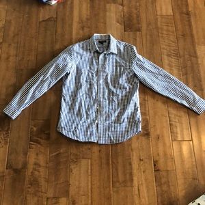 Men’s sizes Large (16-16.5) Banana Republic blue abs white checkered button up dress shirt! Amazing condition, worn once! No stains