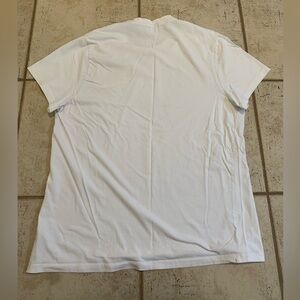 This is a simple and comfortable white t-shirt from the brand "DISTILLERY APPAREL." It is a size XL and has a classic crewneck style. The fabric is soft and perfect for casual wear. While it is in good condition, there are a few minor imperfections to be aware of. The small spot is light and may come out with a proper wash, but are noted for full transparency. This shirt is a great, affordable basic for everyday use.