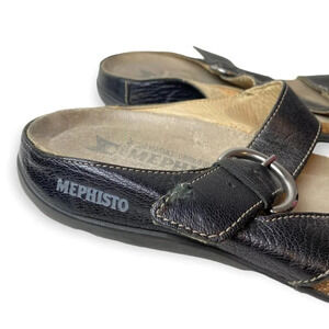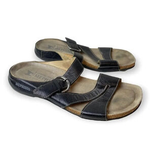 Mephisto Afida Black Nubuck Sandals Cork Footbed Size 37 Great pre-loved condition. Signs of wear as seen.