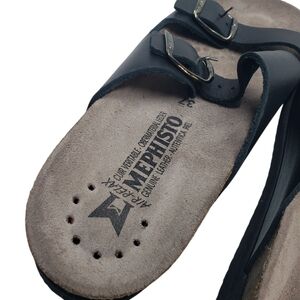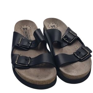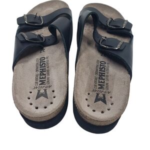 Mephisto Black Leather Two Strap Sandals Adjustable Buckles Cork Footbed Size 37