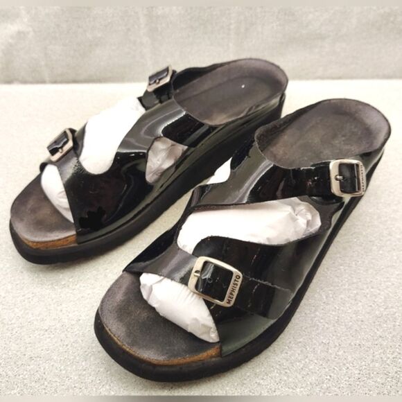 Mephisto black wedge patent sandals in size 9