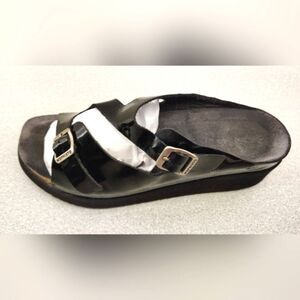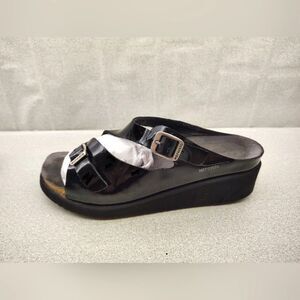 Mephisto Black Patent Strappy Wedge Heel Sandals Sz 9 Shoes