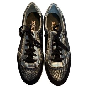 Mephisto Sneakers Womens 9 Blue Silver Leather Slip On Double Zipper Comfort