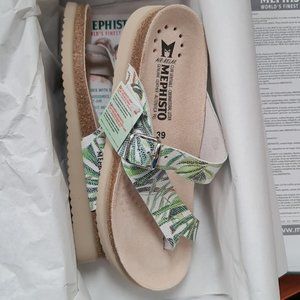 Asymmetric thong sandal with adjustable buckled strap featuring cork midsole and contoured footbed