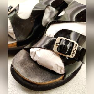 Mephisto Black Patent Strappy Wedge Heel Sandals Sz 9 Shoes