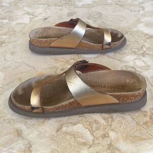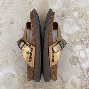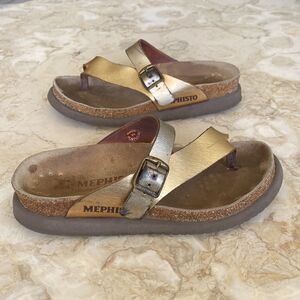 This popular Mephisto thong sandal has an adjustable buckled strap, suede-covered cork and latex footbed that molds to the shape of the foot over time to provide proper support.