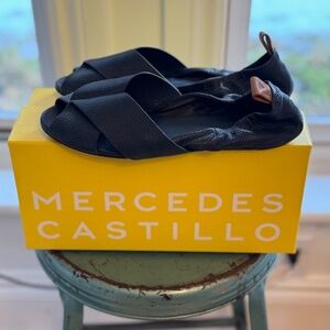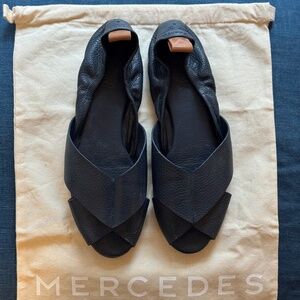Mercedes Castillo Amaia Pebbled Leather Open-toe Flats (Navy Blue - Size 9/39)
