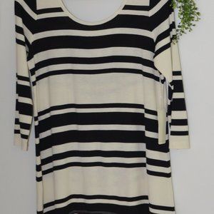 Mercer & Madison Striped Tunic Top High Low Pleated Back Womens Size M New