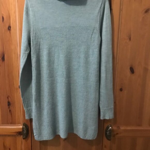 Cozy, Soft, warm ( not itchy) . Nice sage color. Size L. Very little use, Excellent condition !
