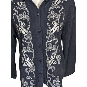 Merino Wool Jacket Womens L Embroidered Sequins Black Jones New York Collection