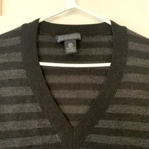 Black & Grey Merino Wool V-neck Sweater from Banana Republic. Long sleeves and slim fit. Perfect condition. Size Small.
