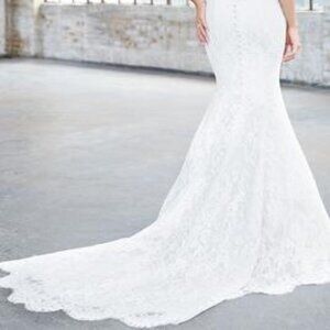 I LOVE the lightness of this show-stopping once-in-a-lifetime gown! The lace is gorgeous, the fit is spectacular, and the back is AMAZING, the train is STUNNING!