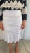 White skirt with golden stitching, partially lined.