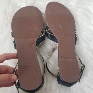 Merona Black Criss Cross Straps Flats Adjustable Ankle Buckle Sandals Thong 6.5