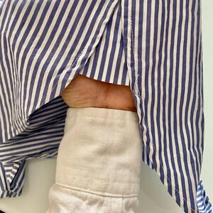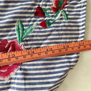 Merona Cotton Blue & White Striped Button Down Shirt Roses Size XS